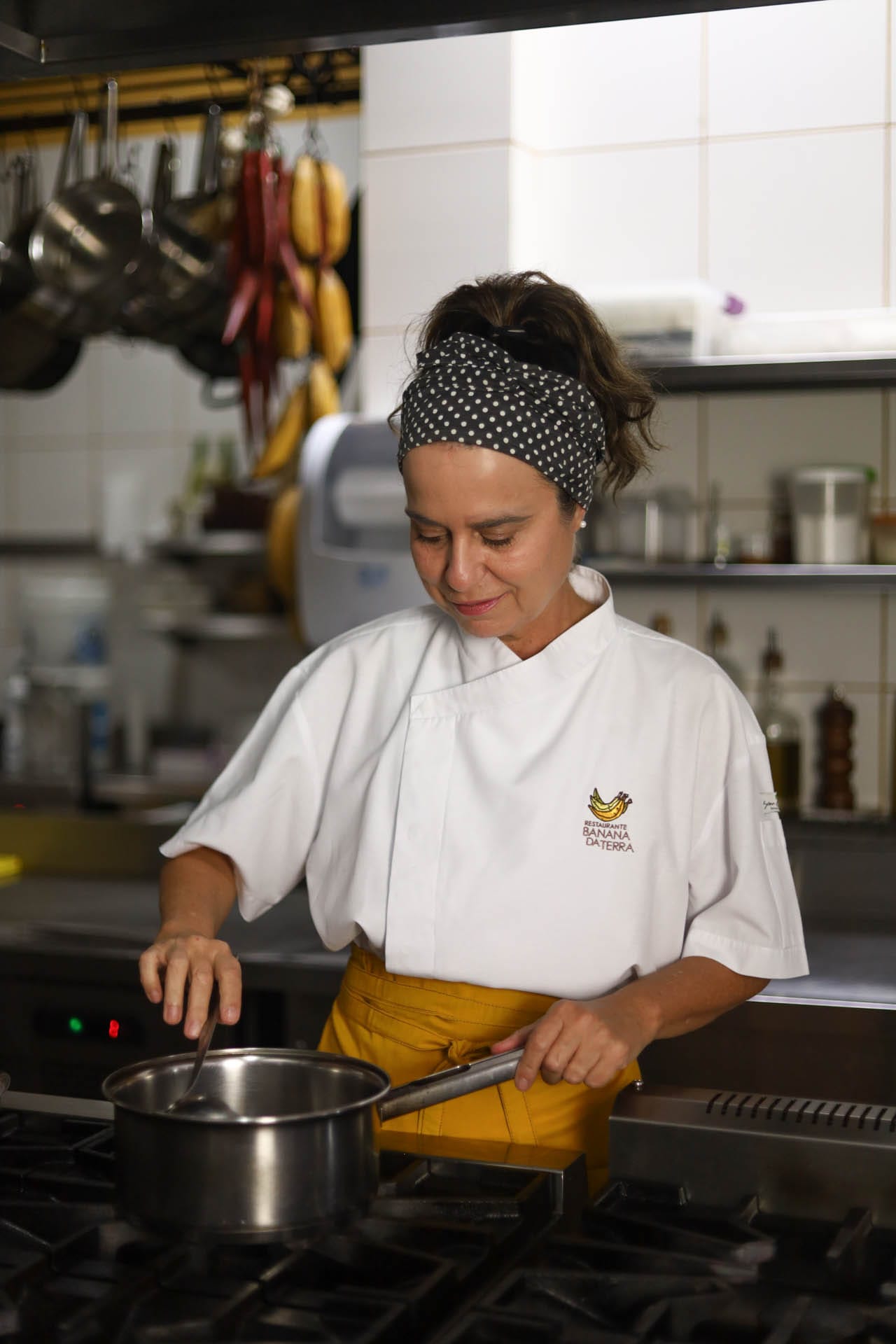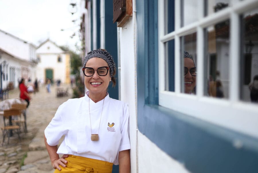 Fez história em Paraty com eventos, casamentos e bufês e hoje além de comandar a cozinha do Banana da Terra está a frente do Café Paraty, Casa Paratiana e da loja A Caiçarinha.