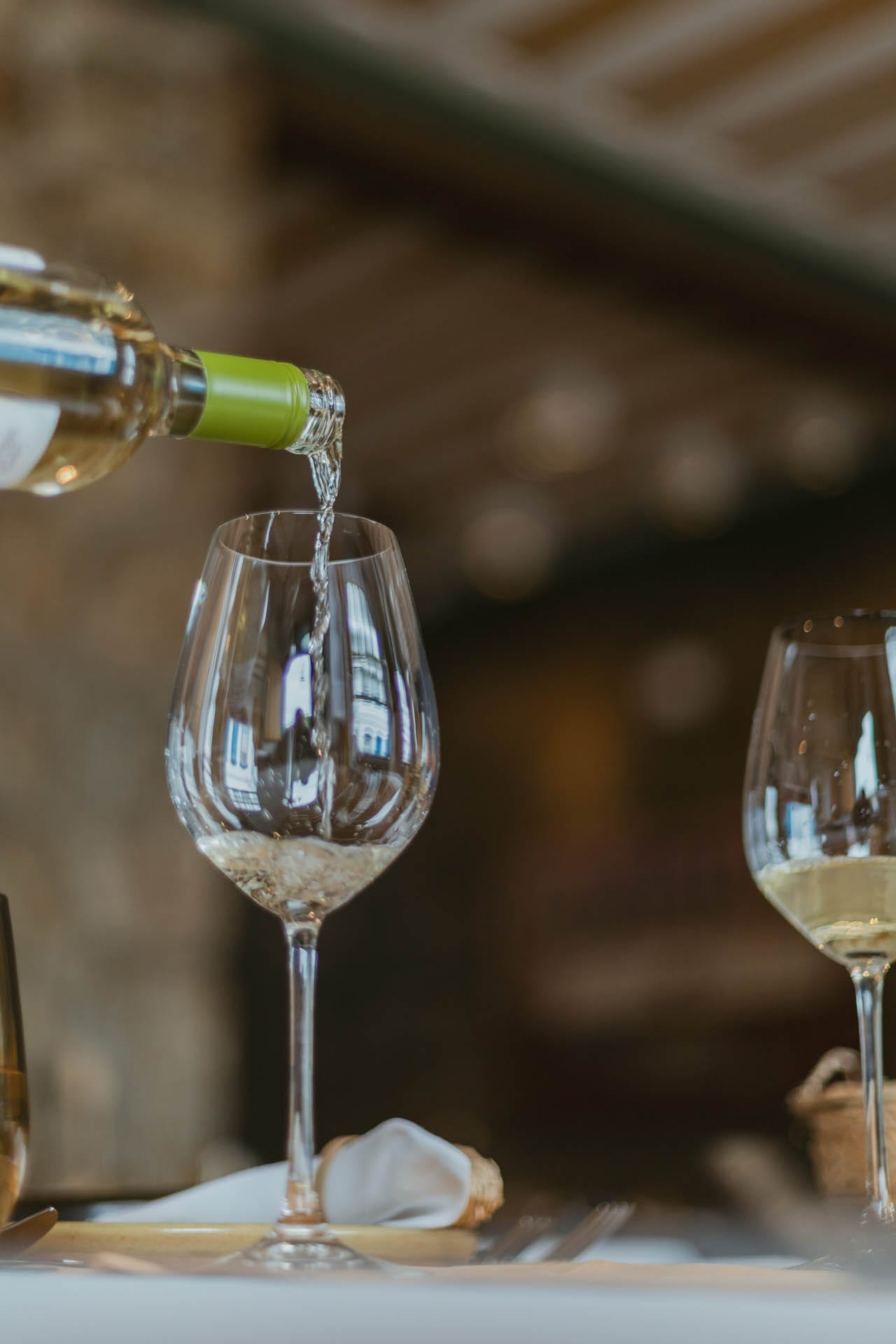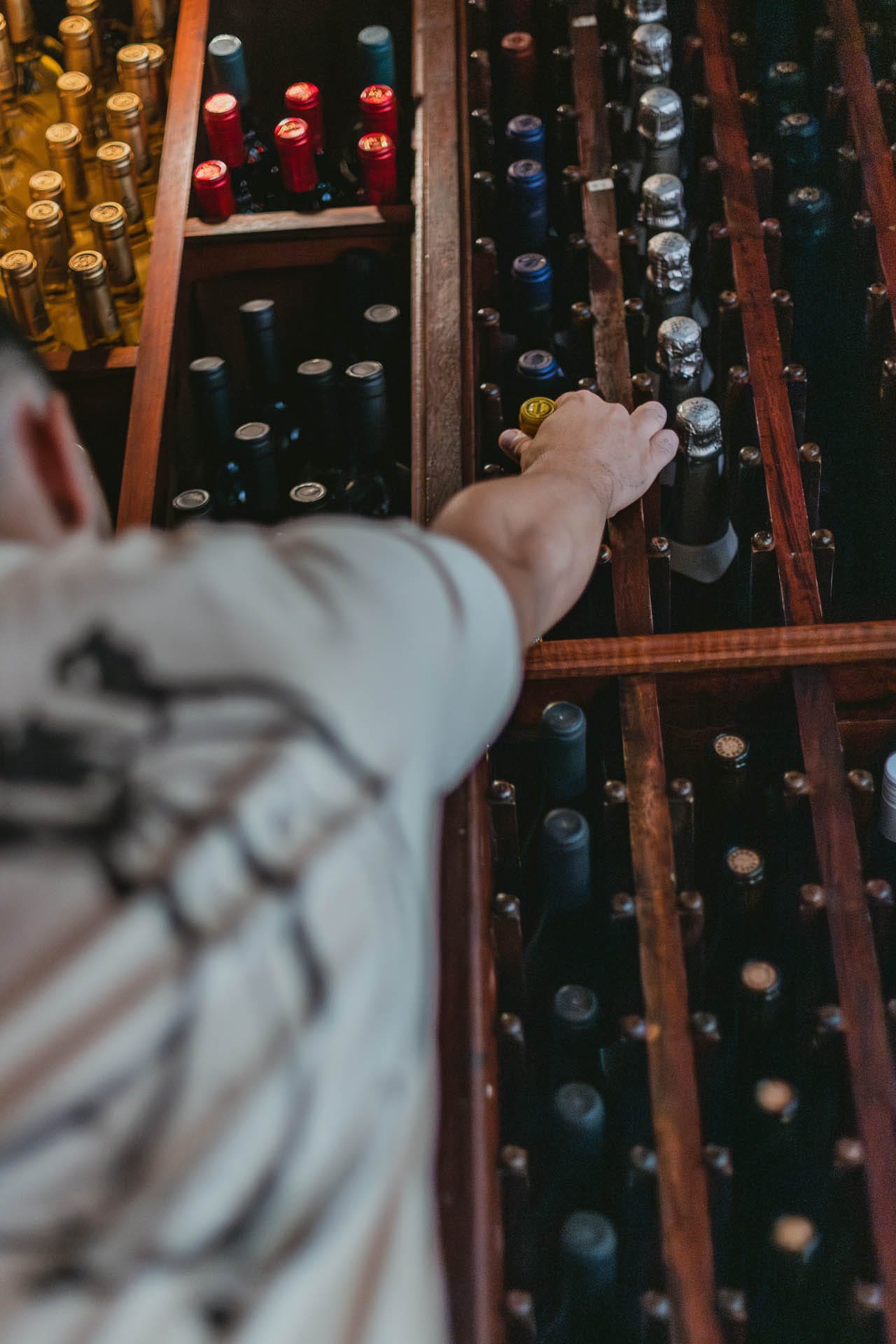 Nossa carta de vinhos tem cerca de 120 rótulos, categorizados entre espumantes, brancos frescos, brancos encorpados, brancos de maceração ou laranja, rosados, claretes ou tintos clarões, tintos frescos e também tintos encorpados, além de vinhos de sobremesa.