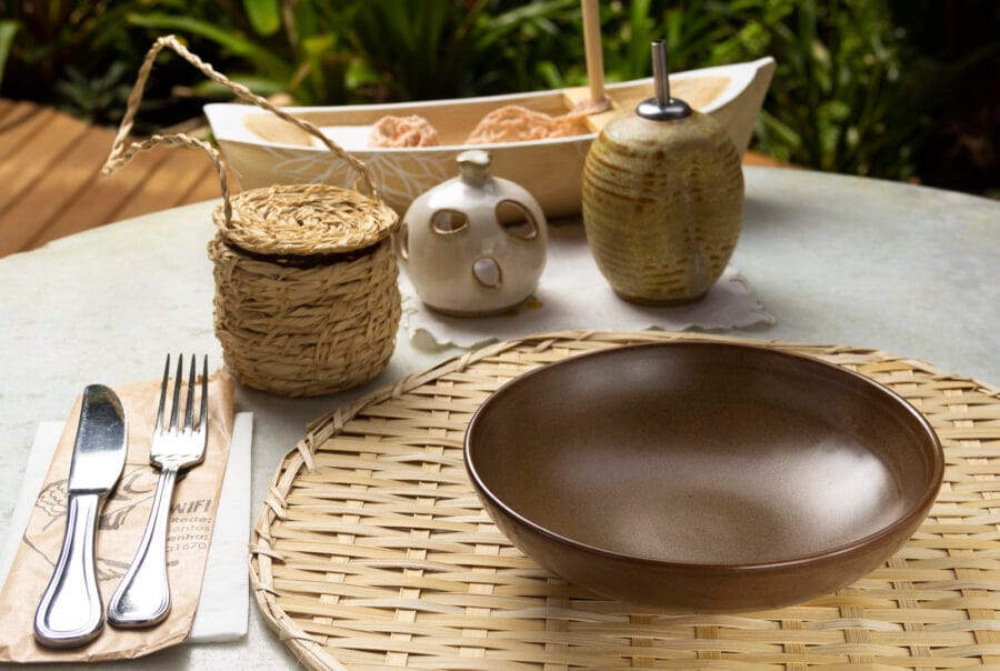Nossa mesa ao ar livre fica próxima ao jardim de inverno e o uso desse espaço depende do clima, mas nosso salão é super arejado.